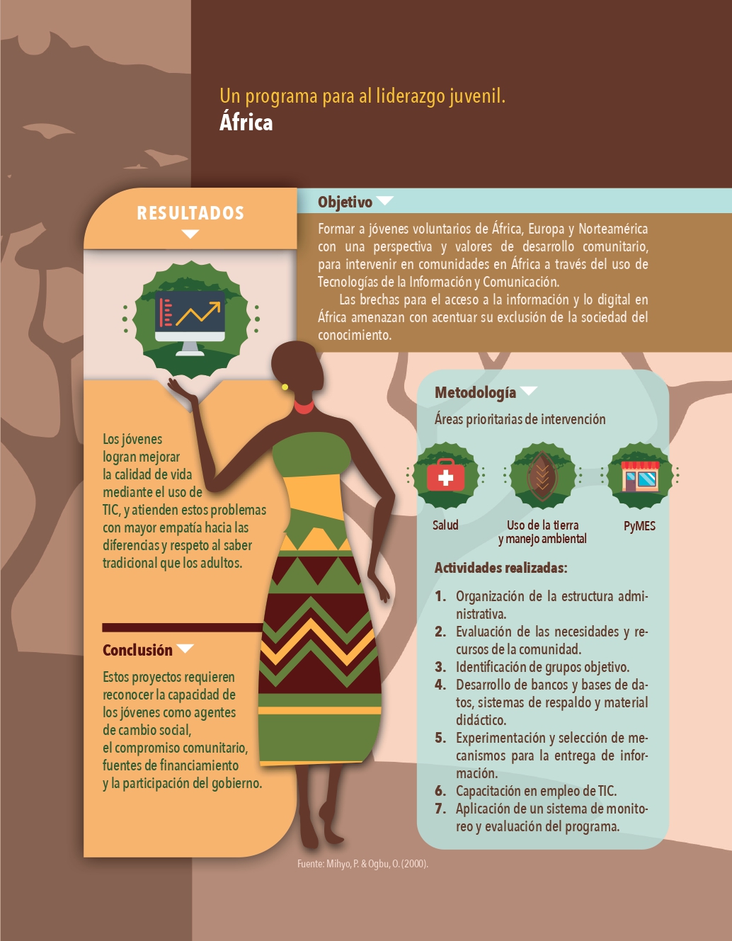 Las TIC tienen el poder de apoyar el desarrollo de los jóvenes, no sólo habilitándolos en su uso, sino para promover su liderazgo en el desarrollo de su comunidad, resolver problemas de violencia, darles voz y participación, incrementar su compromiso cívico y con el desarrollo sostenible, apoyar el desarrollo de jóvenes con discapacidad, entre otras posibilidades. Sin embargo, los estudios o intervenciones que empleen TIC de manera específica para el desarrollo de los jóvenes son escasos. Estos son algunos ejemplos implementados con éxito.